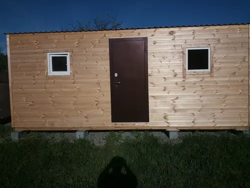 Деревянная бытовка или банька с доставкой и установкой на ваш участок. Стоимость бытовки (бани) зависит от планировки и размера, сообщите требуемый размер и желаемую планировку, получите бесплатный расчёт стоимости. А также дачные дома, дома-бани, беседки под ключ. Оформляется договор. Можно купить в рассрочку. Обращаться по телефону +7(950)746-50-17 или можно написать администратору сайта через форму обратной связи.